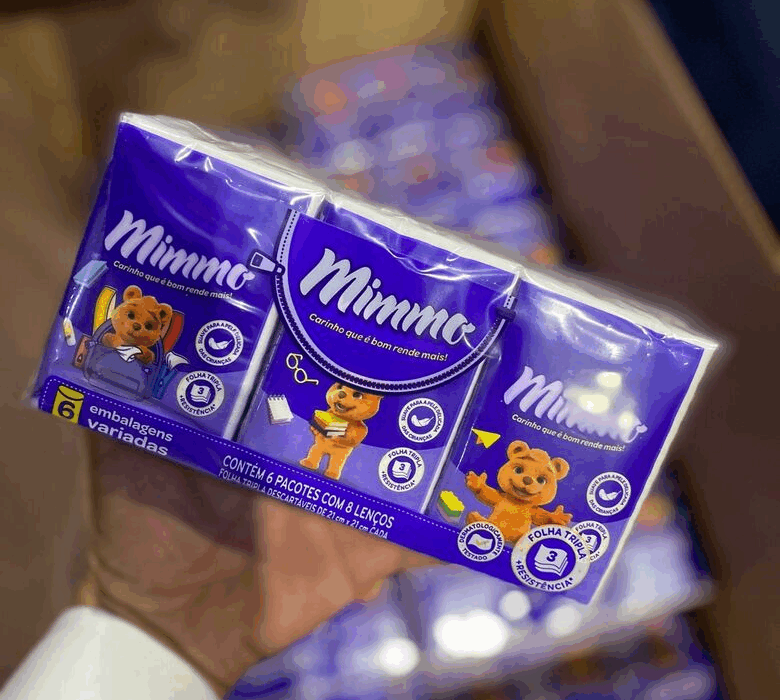 Os novos lenços Mimmo foram apresentados na APAS Show 2025, a maior feira de supermercadistas do mundo, realizada em maio na capital paulista. Os produtos chegam em dois formatos práticos para o dia a dia: uma caixa com 100 folhas e uma versão de bolso com 6 pacotes de 8 folhas cada. Desenvolvidos especialmente para crianças em idade escolar, eles são versáteis e ideais para higiene pessoal (limpeza das mãos e do rosto) e até para o cuidado com objetos como óculos e eletrônicos.