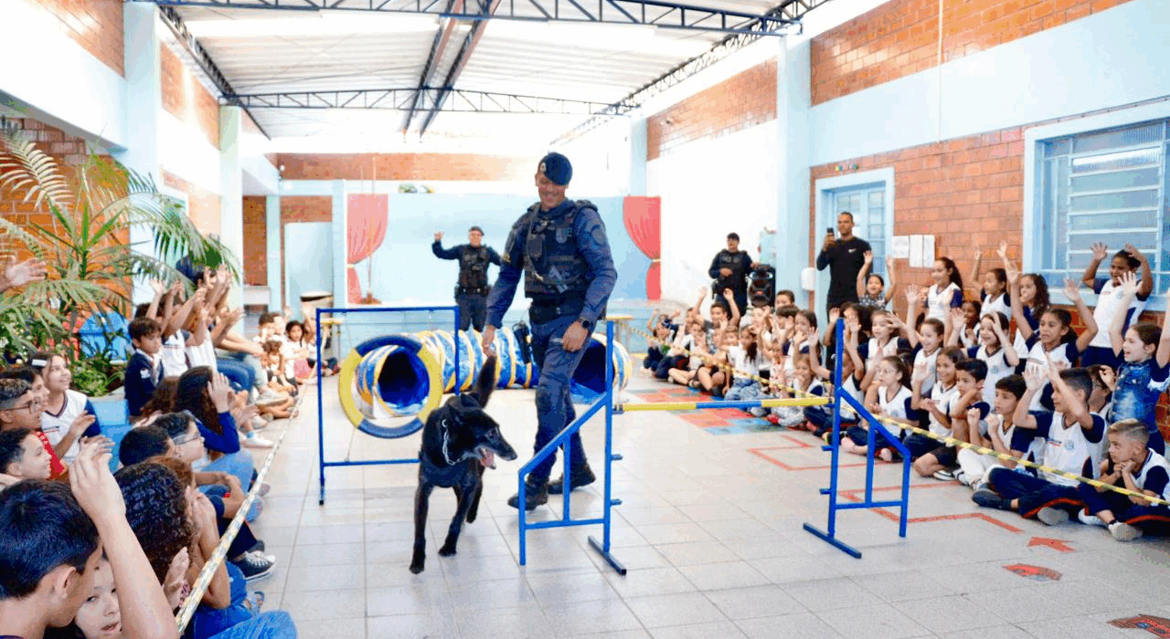 O ponto alto das apresentações foi a performance do cão Taurus, um pastor-belga-de-malinois, que é parte fundamental da equipe de combate ao crime na cidade. As crianças puderam acompanhar uma simulação de treinamento, onde Taurus demonstrou sua disciplina e habilidade ao passar por obstáculos e executar diversas manobras e truques. Ao final da atividade, os alunos tiveram a chance de interagir com o cão e os agentes.