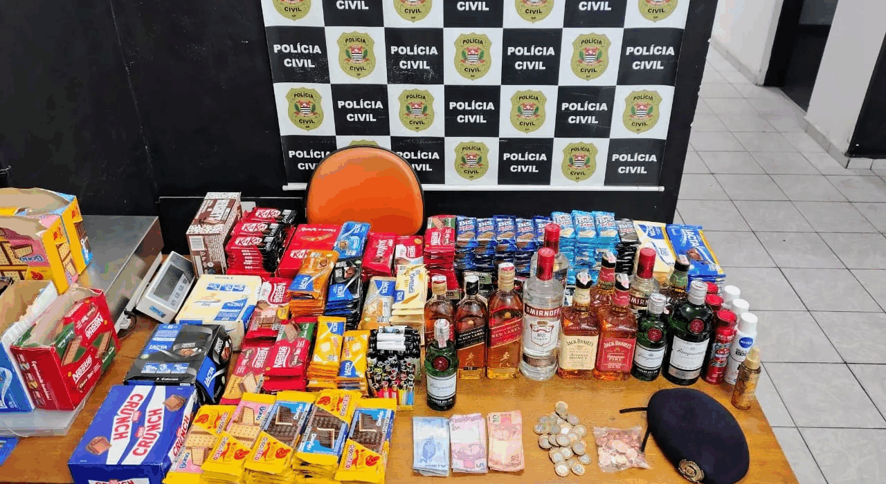 Ação da Força Patrulha resultou na apreensão de 529 itens, incluindo 461 chocolates e garrafas de bebidas destiladas, de uma loja de conveniência na Rua Baruel.