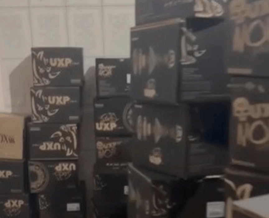 Operação em Ferraz de Vasconcelos apreendeu 650 unidades da marca Bravox, além de um motor de veículo roubado e um Camaro amarelo que teria sido utilizado no assalto.