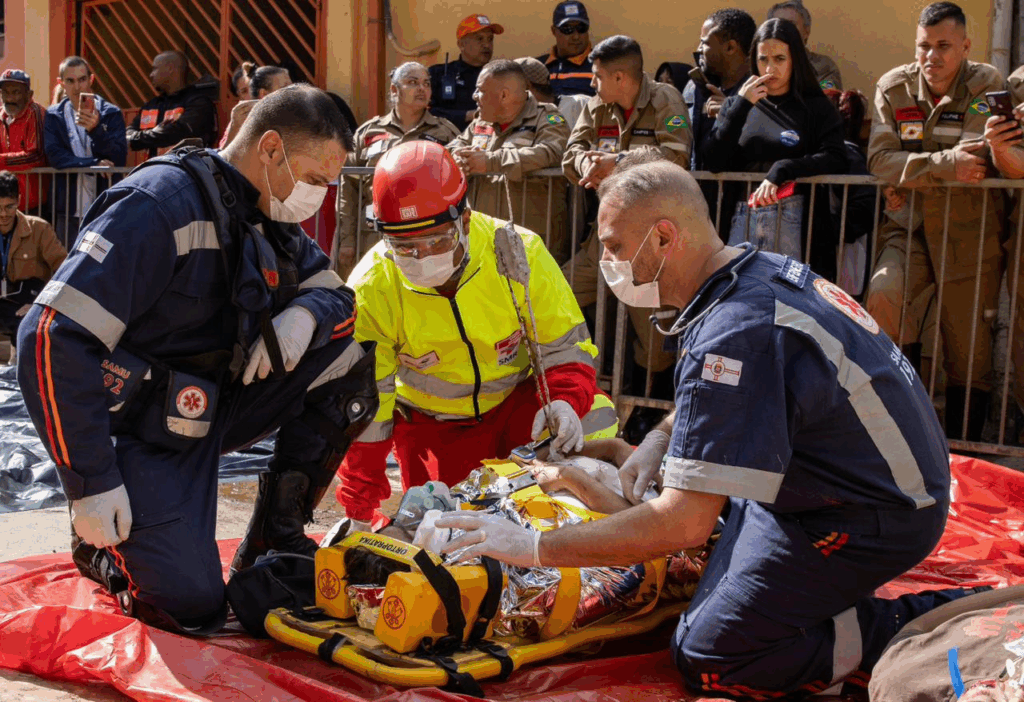 - Vítimas Vermelhas (Graves): 3 vítimas (TCE, transfixação por ferragem e trauma em membros inferiores).