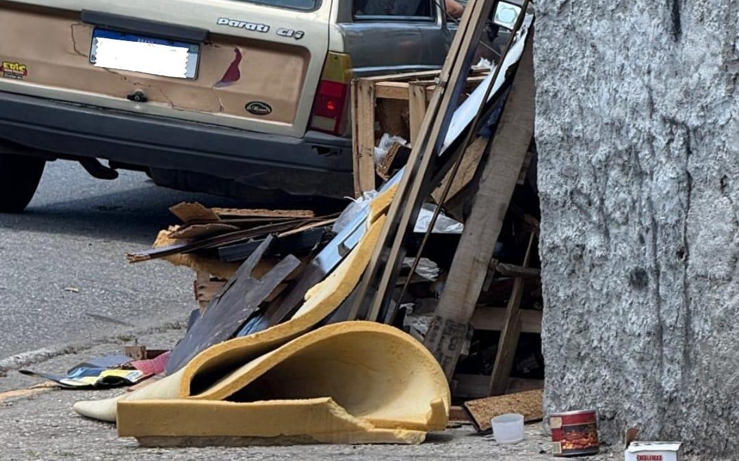 Ao chegarem no endereço indicado, os fiscais encontraram um veículo parado enquanto o condutor descarregava diversos objetos no passeio público, incluindo:
