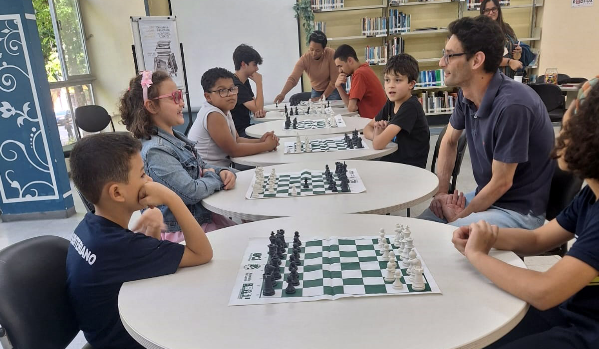 Reconhecido mundialmente como uma poderosa ferramenta educativa, o xadrez ajuda a melhorar a concentração e a socialização, transformando a biblioteca em um espaço dinâmico de aprendizado que vai muito além das estantes de livros.