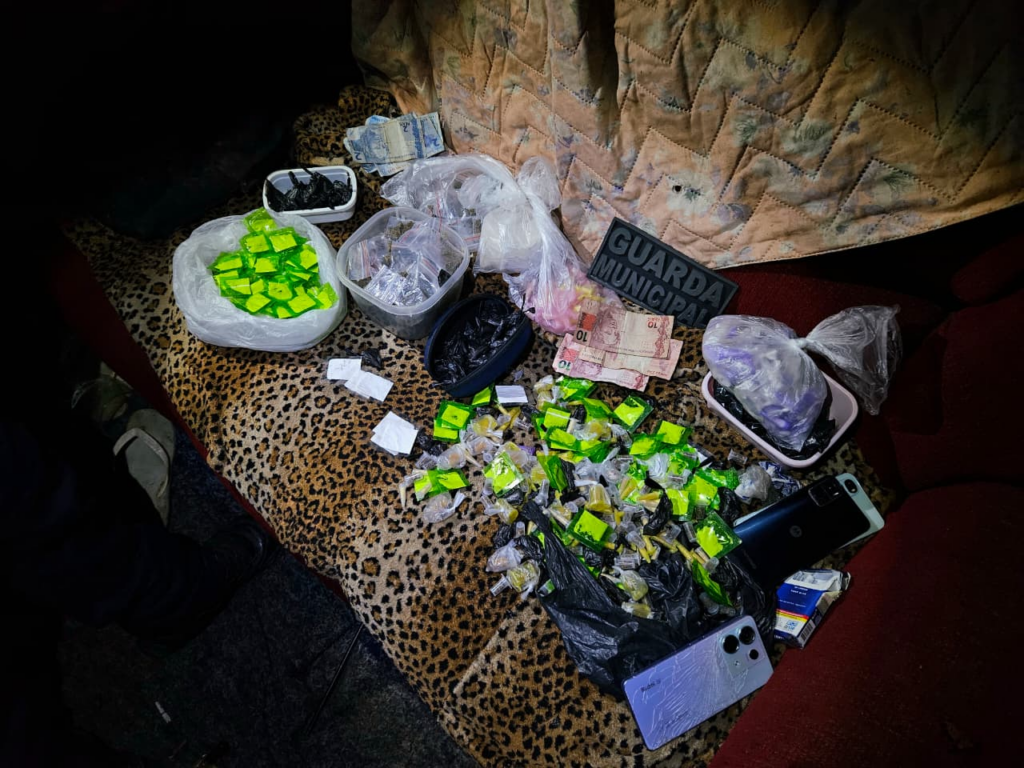 O ponto alto da operação ocorreu no Jardim Miray. Os guardas localizaram um barraco que servia como centro de armazenamento e distribuição. No local, foram encontradas 500 porções de drogas (entre cocaína, crack e drogas K), além de R$ 44 em espécie, dois celulares e cadernos com anotações detalhadas do tráfico. Um suspeito conseguiu fugir antes da chegada das equipes, mas o material foi totalmente confiscado.