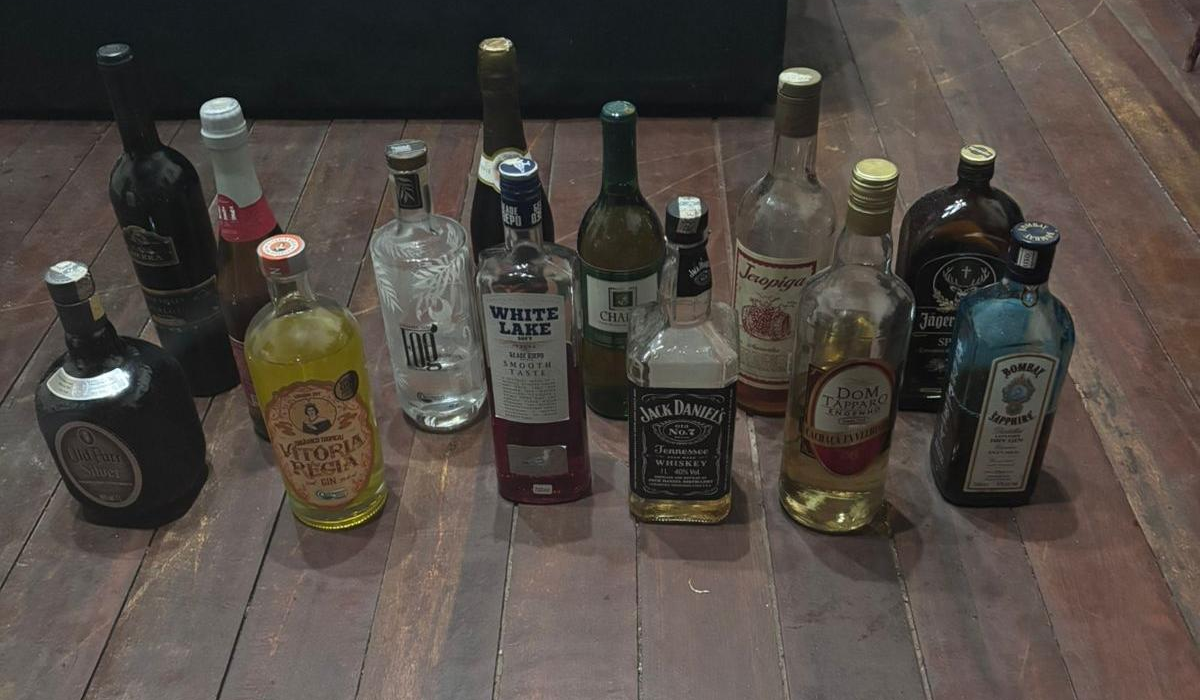 Durante a varredura tática pelo imóvel, os policiais localizaram o suspeito no interior da casa. Ele já havia selecionado e embalado 15 garrafas de bebidas alcoólicas em uma sacola, prontas para serem transportadas.