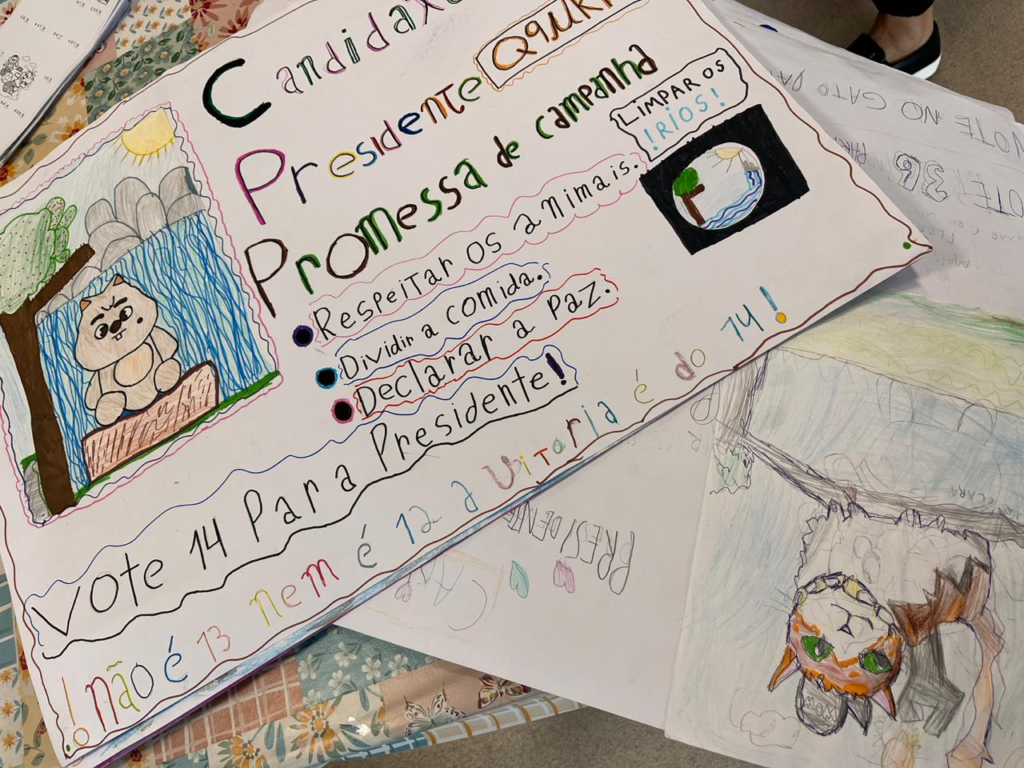 Ao longo de três semanas, o aprendizado interdisciplinar conectou disciplinas como Língua Portuguesa (na redação de propostas), Matemática (na contagem de votos e estatísticas) e Ciências (no estudo da fauna e preservação).