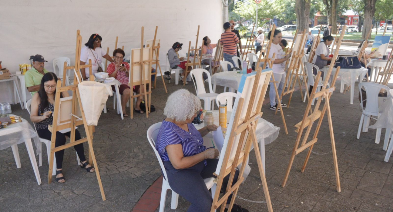 A cena urbana de Suzano ganhou novas nuances nesta quarta-feira (22/04). Em uma iniciativa que une educação artística e ocupação do espaço público, a Secretaria Municipal de Cultura realizou a segunda edição do projeto “Suzano Cores e Inspirações”. A Praça João Pessoa, um dos marcos do centro da cidade, transformou-se em um ateliê vivo, integrando o calendário festivo do aniversário de 77 anos de emancipação político-administrativa do município.