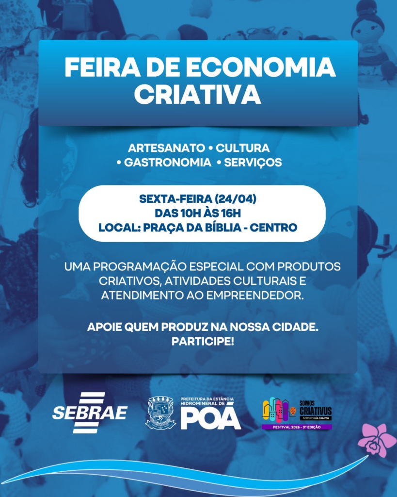 A iniciativa, promovida pelas Secretarias de Turismo, Cultura e Desenvolvimento Econômico, faz parte da Semana do Dia Mundial da Criatividade. Mais do que uma exposição, o evento é um motor de desenvolvimento para os nossos produtores locais, contando com a parceria estratégica do Sebrae e do Instituto Léa Campos através do projeto Somos Criativus.