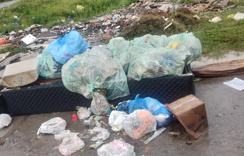 Acúmulo de entulho na Rua Equador gera mau cheiro e acende alerta para riscos de alagamentos no bairro.