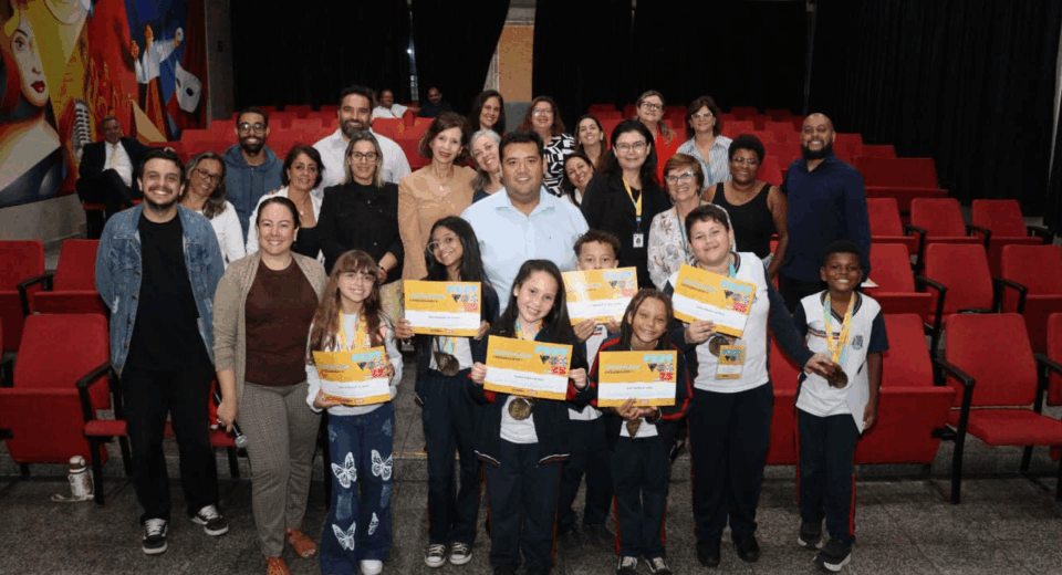 Cerimônia no Cineteatro celebra o sucesso de estudantes da rede municipal, que brilharam interpretando MPB e outros estilos, com destaque para a participação e apoio ao desenvolvimento artístico.