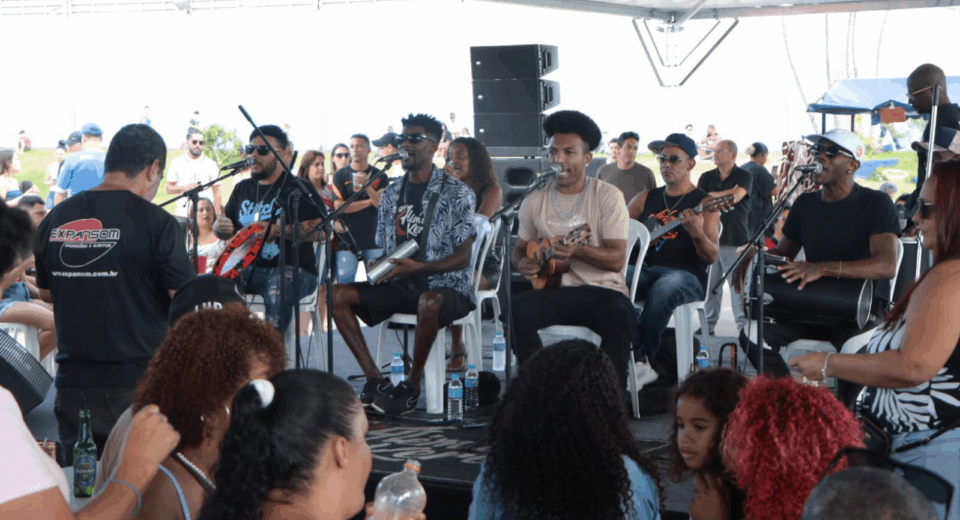Grupo “Os Batuqueiros de Suzano” agitou o Pavilhão Zumbi dos Palmares em evento que celebrou a cultura afro e o artesanato local.