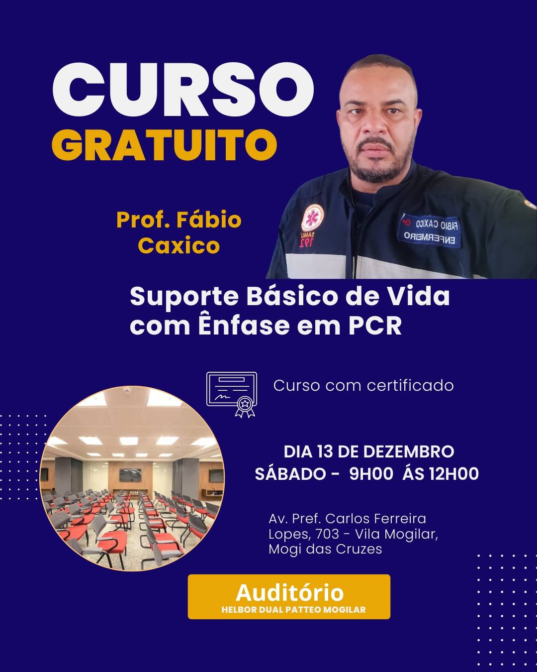 Alto Tietê Itaquá Mogi das Cruzes Suzano Curso Gratuito de Suporte Básico de Vida em Mogi das... Evento em 13 de Dezembro no Auditório Helbor Dual Patteo Mogilar ensina técnicas cruciais de Reanimação Cardiopulmonar (RCP) com instrutores... novembro 24, 2025
