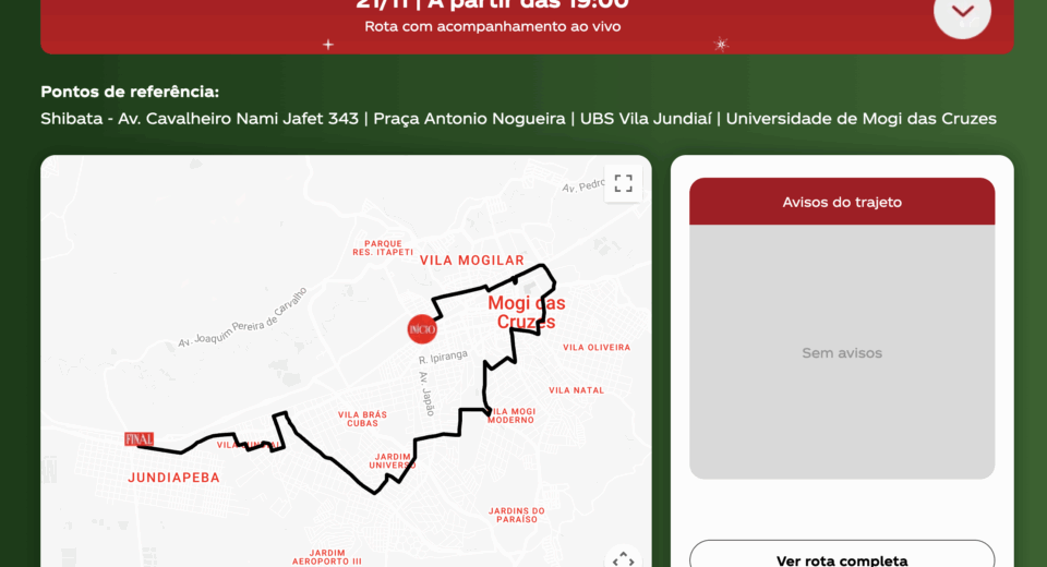 Com cinco caminhões temáticos, audiodescrição em tempo real e compensação total de CO₂, o tradicional desfile natalino passa hoje pelo Alto Tietê, a partir das 19h em Mogi e 21h30 em Suzano.